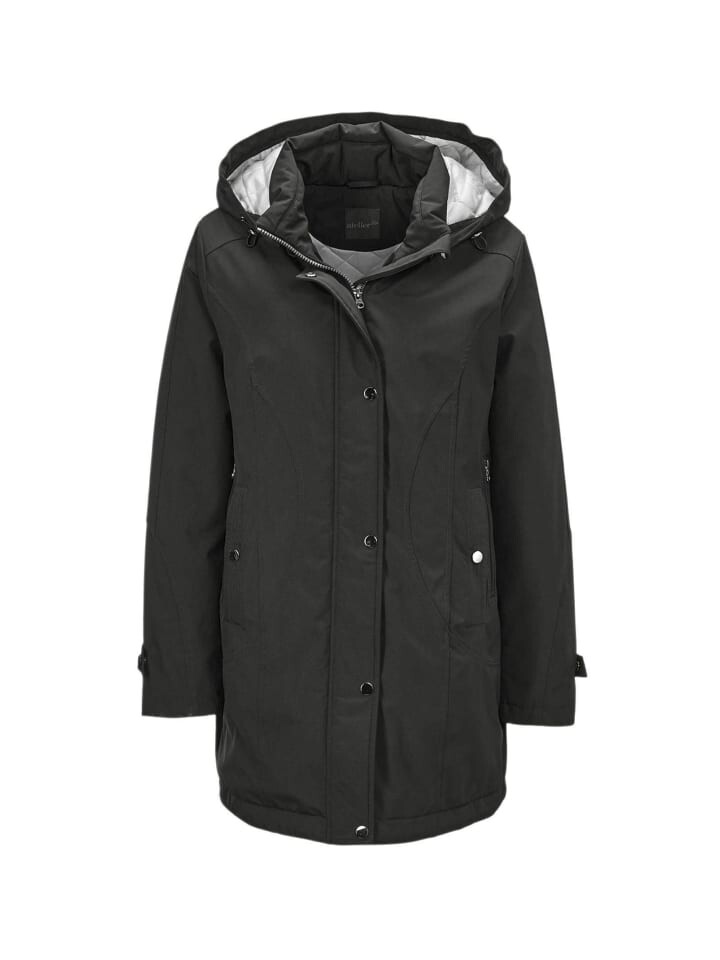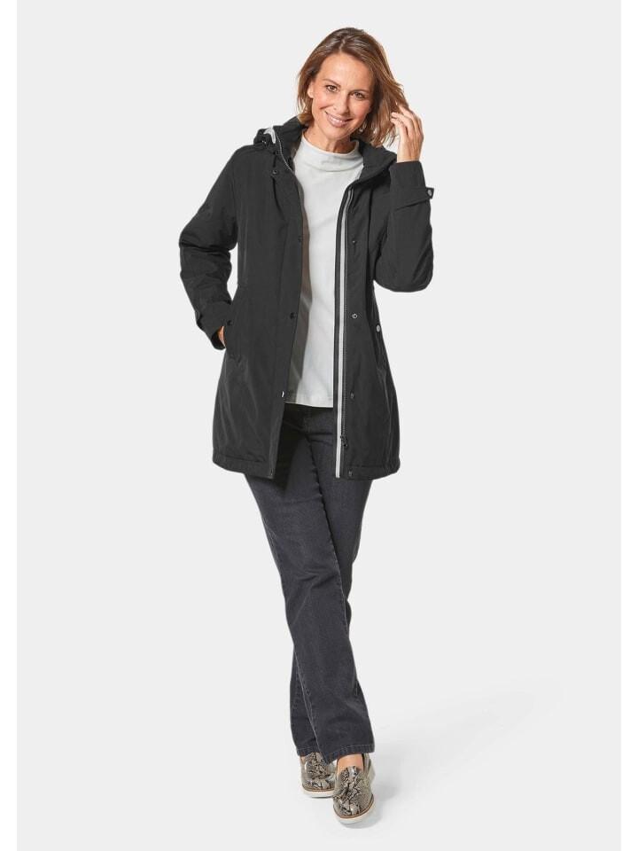 Куртка спортивного вида. Современный крой предлагает достаточно места благодаря множеству карманов. Регулируемый по ширине шнурок практичен и позволяет красиво подчеркнуть талию. Высокий воротник и стеганая подкладка внутри и на капюшоне сохранят тепло. Работали с красивыми репсовыми лентами и трикотажными манжетами на манжетах. Длина около 83 см по размеру. 46, размер около 79 см. 23.