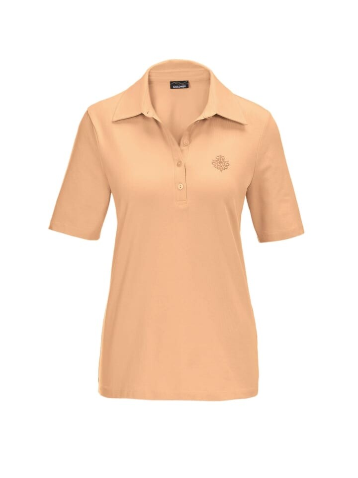 Рубашка-поло в большом выборе красивых пастельных оттенков. Классический крой с воротником-поло, планкой с пуговицами и небольшой вышивкой на груди. Пуговицы в тон с перламутровым эффектом выглядят очень элегантно. С удобными рукавами до половины длины. Длина около 66 см по размеру. 46, размер около 62 см. 23.