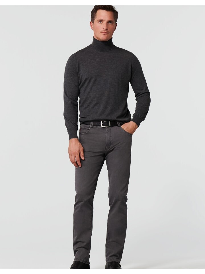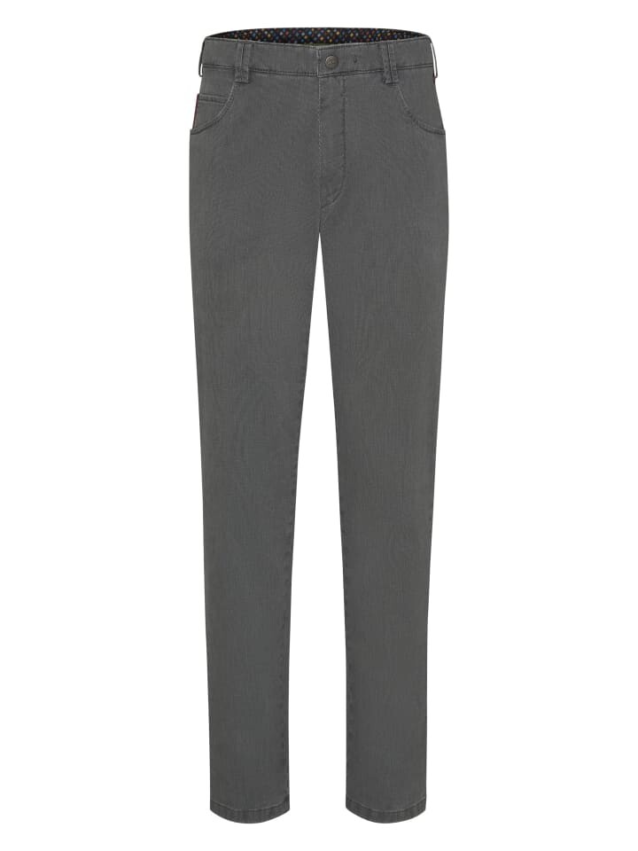 Эти брюки чинос из шерсти из мягкой двухцветной ткани из натурального хлопка впечатляют. Модный узор на внутренней стороне ткани виден на задних карманах. Со вкусом подобранные цвета у вас обязательно получится удачный наряд. Эластичность и специальный круглый пояс обеспечивают комфорт. Яркая тканая внутренняя подкладка и высококачественные пуговицы делают брюки MEYER особенными. 100% климатически нейтральный, ЧЕСТНЫЙ и ответственный продукт, произведенный в Европе!
