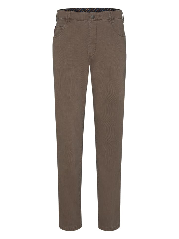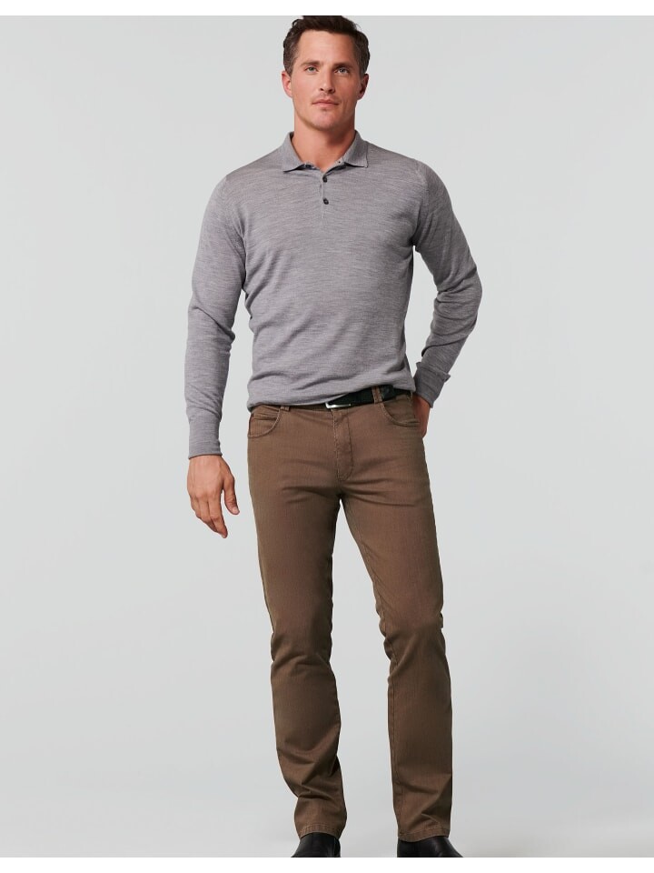Эти брюки чинос из шерсти из мягкой двухцветной ткани из натурального хлопка впечатляют. Модный узор на внутренней стороне ткани виден на задних карманах. Со вкусом подобранные цвета у вас обязательно получится удачный наряд. Эластичность и специальный круглый пояс обеспечивают комфорт. Яркая тканая внутренняя подкладка и высококачественные пуговицы делают брюки MEYER особенными. 100% климатически нейтральный, ЧЕСТНЫЙ и ответственный продукт, произведенный в Европе!