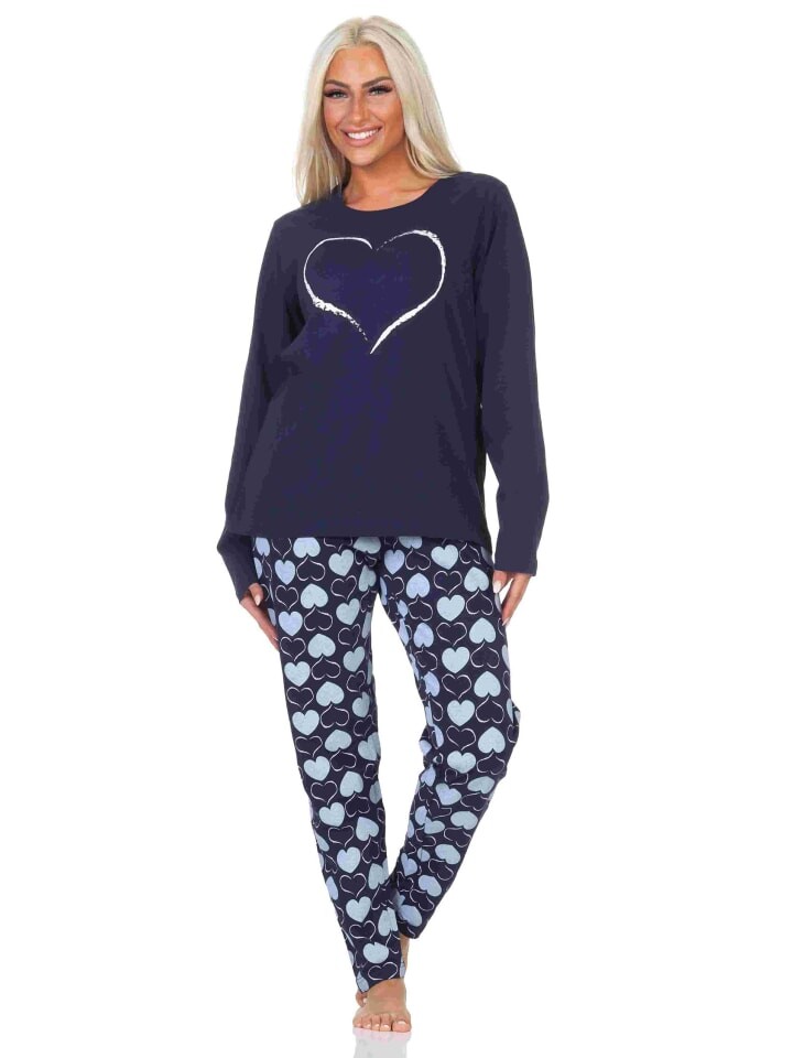 Пижама NORMANN langarm Herz Tupfen Punkte, темно-синий