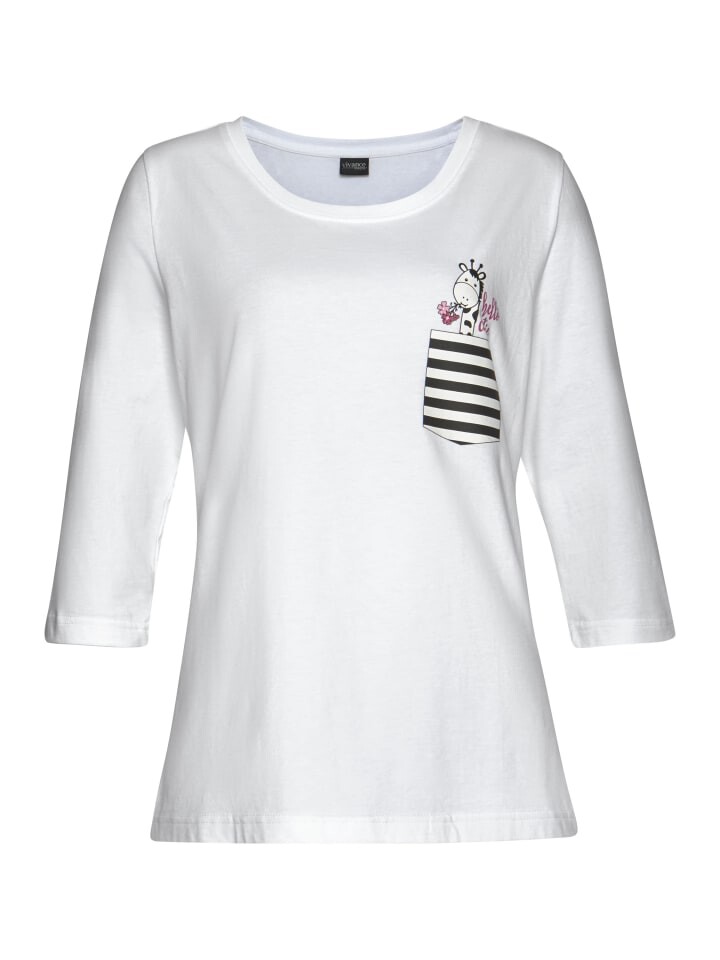 - Рубашка с рукавами 3/4, круглым вырезом и нагрудным карманом с принтом