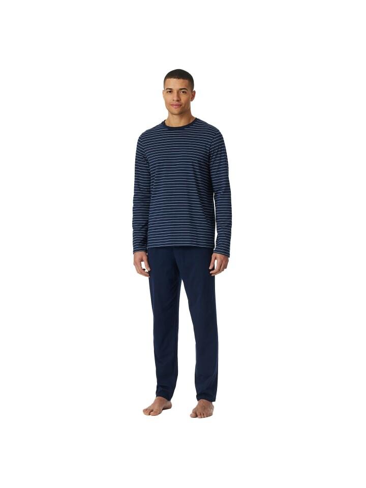 Длинный пижамный комплект для мужчин от бренда SCHIESSER. Рубашка с длинными рукавами и круглым вырезом с рисунком. Длинные однотонные пижамы.