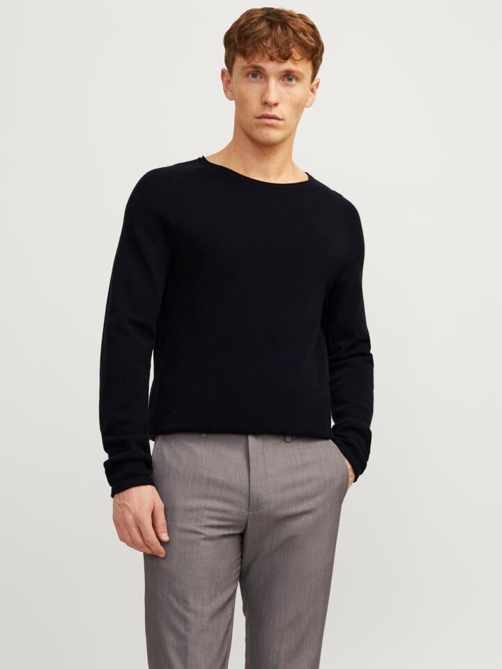JACK&JONES свитер «JJEHILL» черного цвета, однотонный, вязаный свитер, легкая вязка, структурная вязка, круглый вырез, длинные рукава. Стирать наизнанку. Стирайте с похожими цветами.