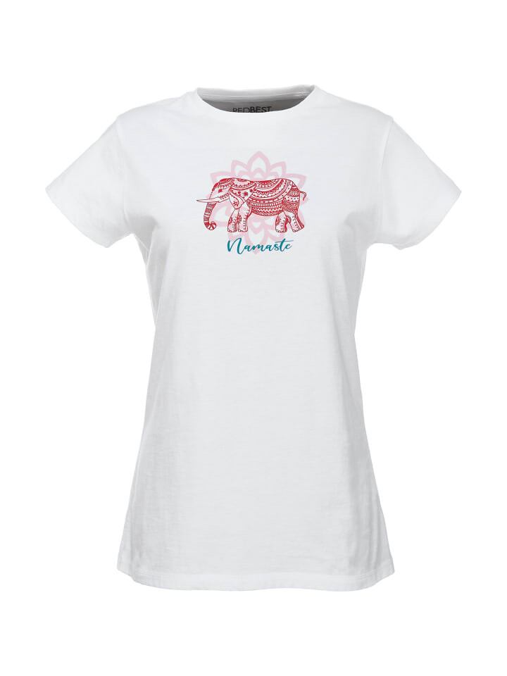 REDBEST женская пижама из одинарного джерси. Неотразимое ночное белье в восточном стиле обещает сладкий сон и полное расслабление. Однотонный топ с круглым вырезом и крупным принтом со слонами. С этим сочетаются брюки-капри с рисунком по всей поверхности. Имеет широкий пришитый эластичный пояс, ремешок для завязки и боковые карманы. Приятная мягкая, приятная на ощупь ткань, приятная для кожи и дышащая.
