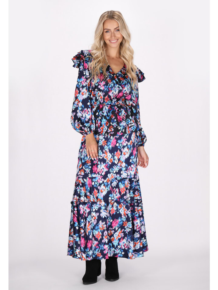 Эта блузка с очаровательным цветочным узором создает женственный образ благодаря рюшам на плечах и V-образному вырезу. Шов на талии подчеркивает фигуру благодаря эффектной баске, слегка расширяющейся книзу. Эта блузка струящегося силуэта, выполненная из легкой ткани, подойдет для любого случая. Внутри имеется тонкая этикетка для аутентификации.