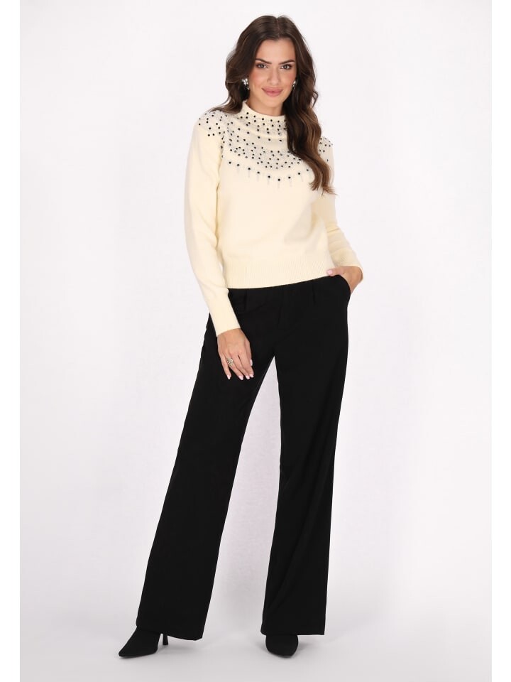 Поддайтесь очарованию этого свитера с длинными рукавами и водолазкой в рубчик. Украшенное витиеватым декоративным узором, напоминающим ожерелье или гирлянду, оно излучает праздничную элегантность. Многочисленные ряды украшений имеют различные формы и мотивы и придают изделию декоративность. Этот свитер с ребристым краем по краю и манжетами для плотного прилегания обещает тепло и стиль.