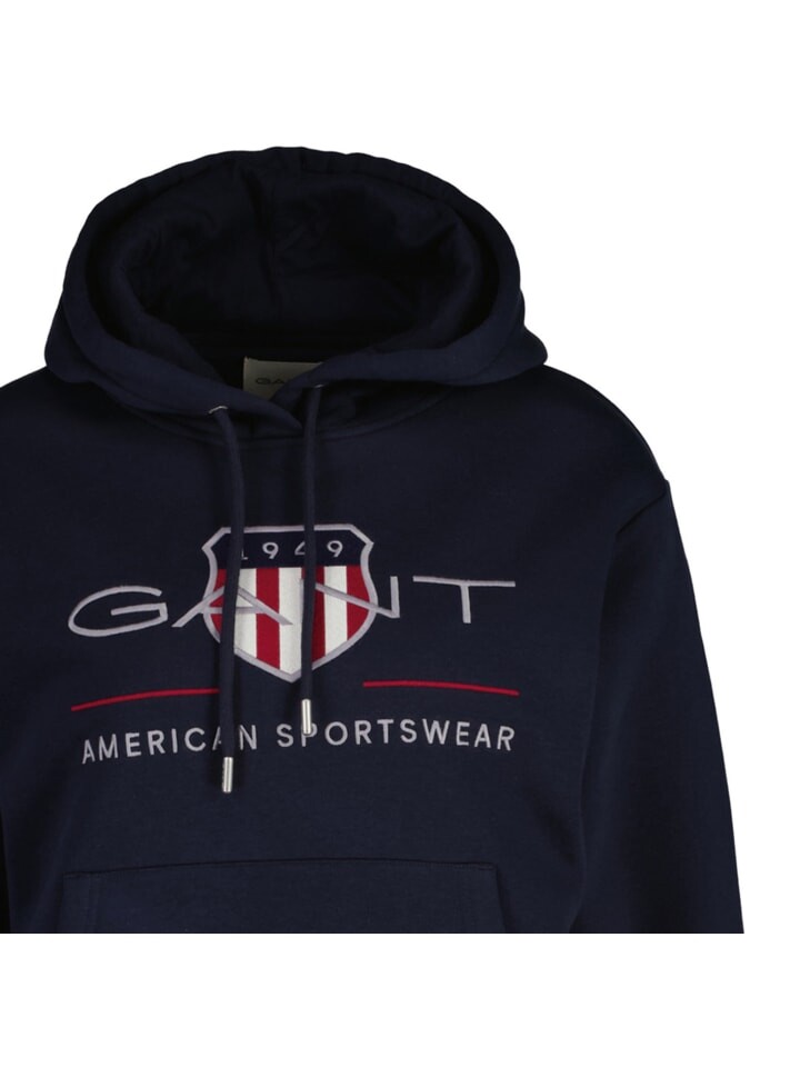 Стильное худи для женщин от бренда GANT. Приятная мягкая смесь хлопка, большая вышивка логотипа, карман-кенгуру, капюшон на шнурке.