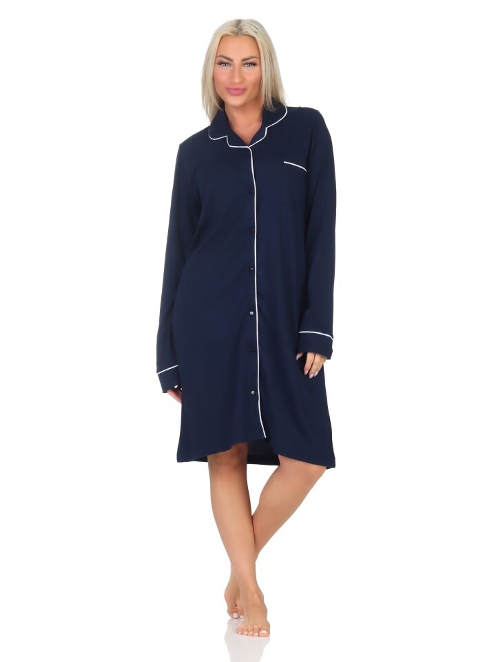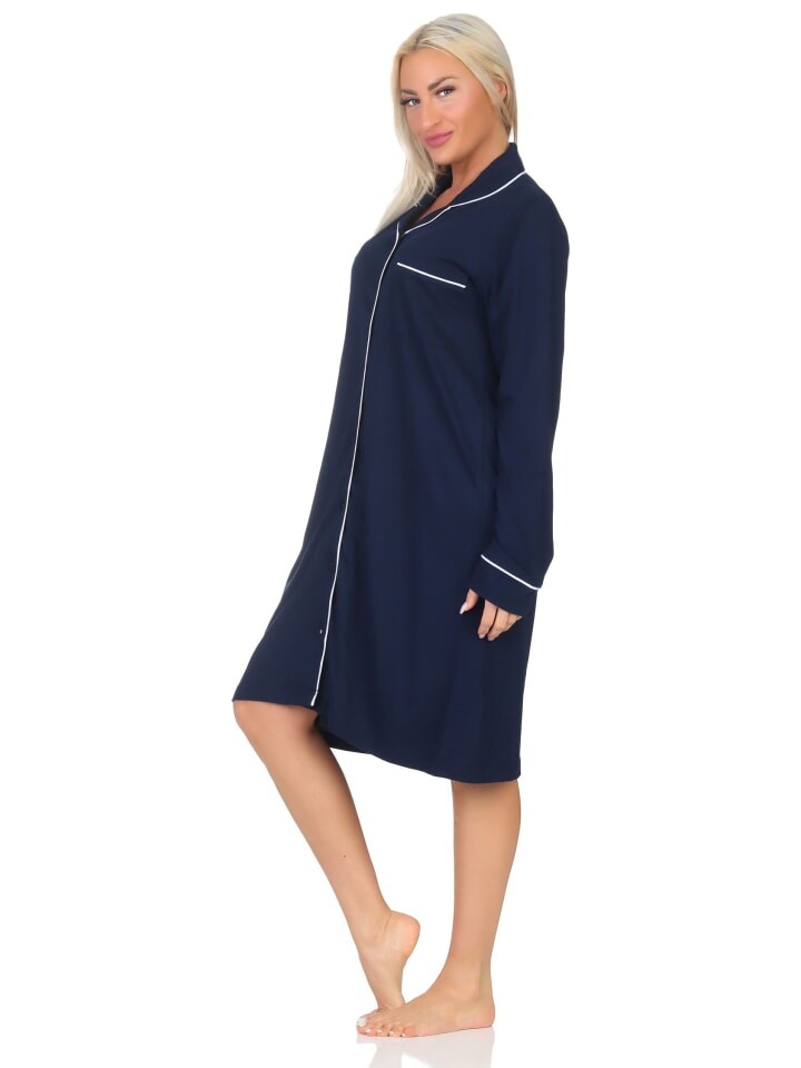 Ночная рубашка NORMANN Langarm durchknöpfbar Punkte Optik, синий