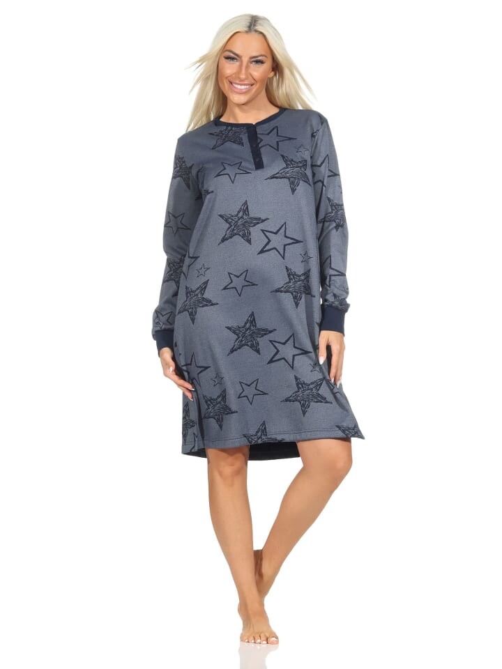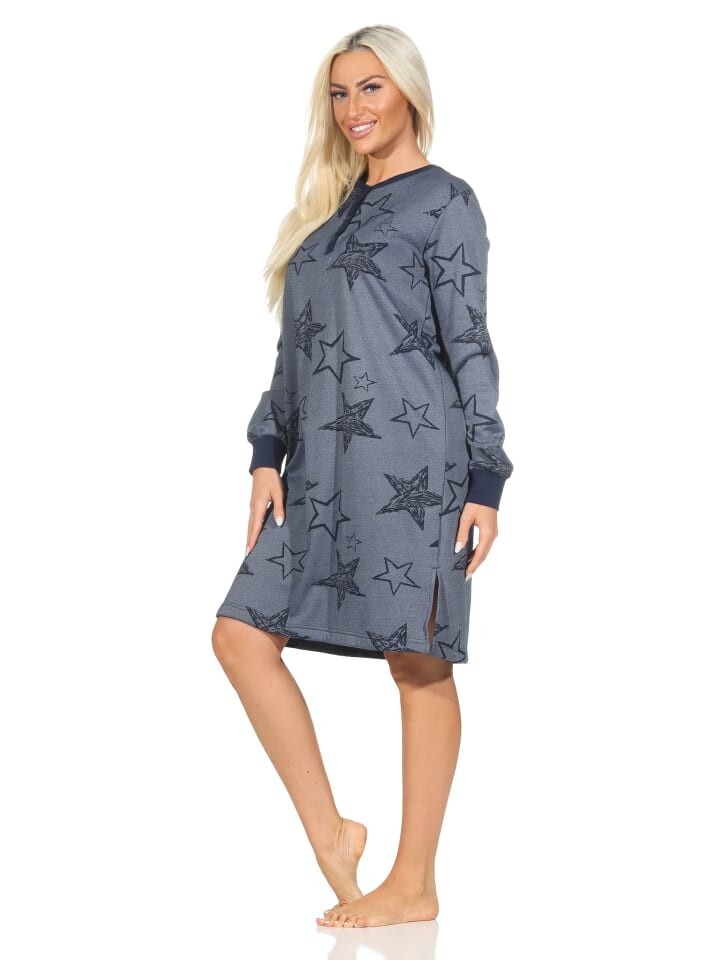 Ночная рубашка NORMANN Frottee langarm Bündchen Sterne, синий