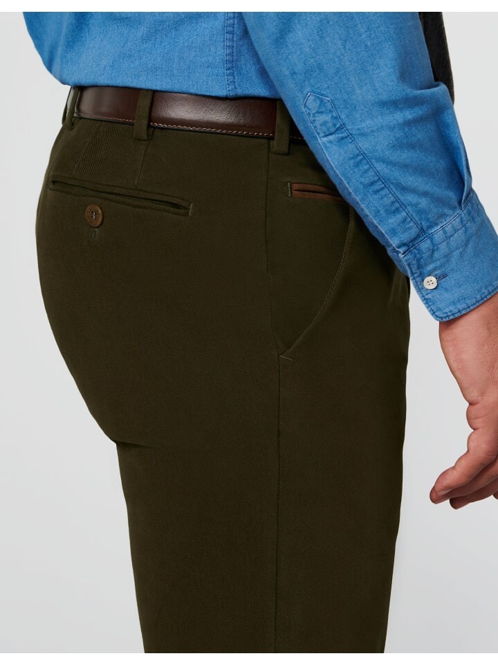 Брюки серии MEYER EXCLUSIVE сразу впечатляют своим элегантным внешним видом и особым качеством изготовления выбранных тканей. Помимо боковых карманов, современная плоская передняя часть имеет два задних кармана с двойной окантовкой и дополнительный карман для монет. Плотный зимний хлопок изготовлен из органического хлопка и имеет очень эластичную суперэластичную структуру, обеспечивающую оптимальную свободу движений и оптимальную посадку.