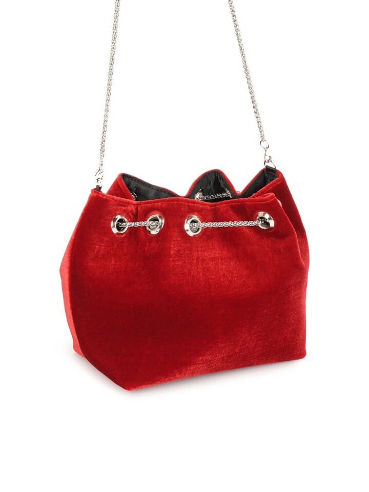 Уникальная вечерняя сумочка ярко-красного цвета является выражением женской элегантности и романтики. Изготовленное из мягкой ткани с нежной текстурой, оно излучает роскошь и утонченность и приглашает полюбоваться своей неповторимой красотой. Мешкообразная форма отличается утонченностью и легкостью. Застежка в виде цепочки с петлей – современный подход к классике. Привлекающим внимание элементом является каскадный декор кристаллов на застежке, который придает образу неповторимый блеск и соблазнительный шарм.