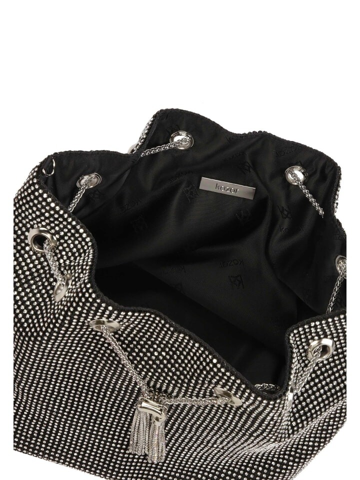 Сумка среднего размера в форме сумки – это настоящее сочетание элегантности и изысканности. Выполненное из черной ткани с синтетической сеткой с блестящими серебряными кристаллами, оно излучает исключительный гламур и шик. Форма сумки делает ее легкой и непринужденной, поэтому она подходит как для вечера, так и для более повседневных случаев. Застежка на украшенную цепочку со стопором придает изделию современный шарм, подчеркивая элегантность всей композиции. Эта сумочка является не только практичным аксессуаром, но и выражением личного стиля и вкуса.