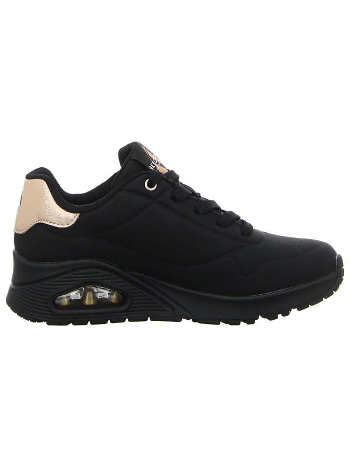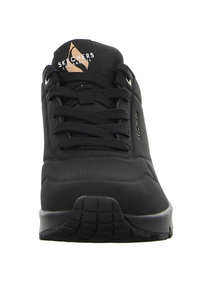 Черные спортивные женские кроссовки UNO-Golden Air от Skechers – это абсолютно удобно и элегантно! Обувь имеет модный вид и впечатляет своей легкостью и комфортом. Особая изюминка – высокая подошва на танкетке. Стелька из пены с эффектом памяти обеспечивает оптимальную адаптацию к ноге. Подошва на танкетке из пеноматериала обещает несравненный комфорт при ходьбе, превращая ее в прогулку по облакам. Дамы, которым нужен надежный спутник в спортзале или в городе, не ошибутся с кроссовками UNO-Golden Air от Skechers!