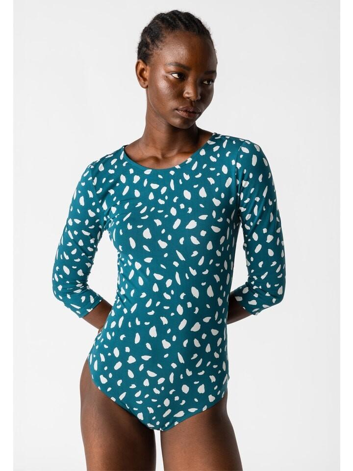 ALENA Body мягко обволакивает линию тела, словно вторая кожа, и обеспечивает максимальный комфорт. Классический крой с рукавами ¾ и стрингами, а также мягкий эластичный материал идеально подходят для легких тренировок и в качестве нежной основы для повседневной жизни с юбками и брюками.