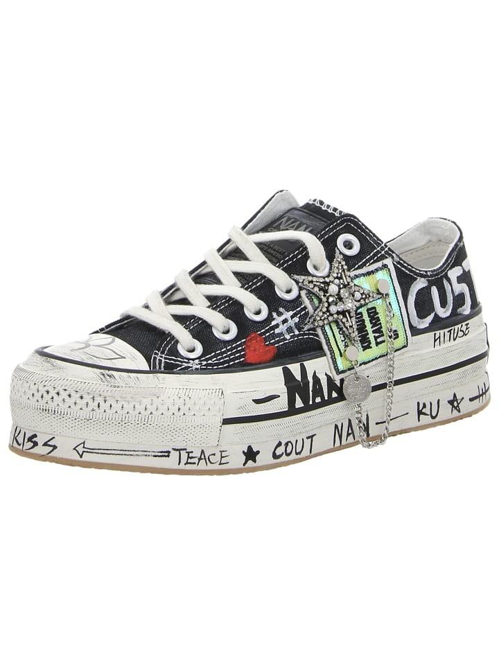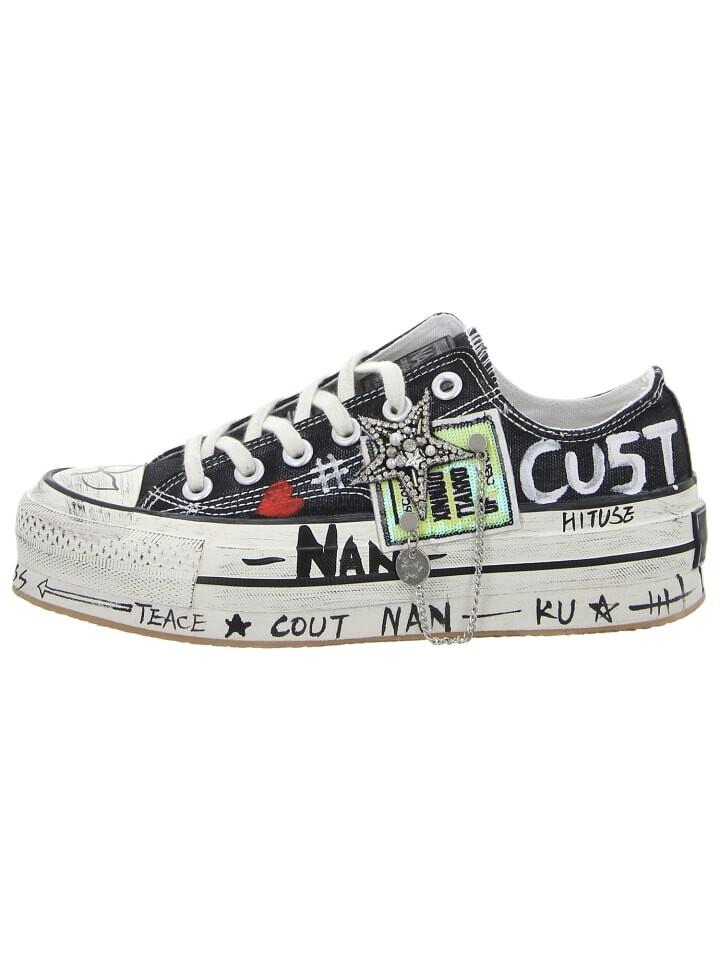 Эти игривые кроссовки черного цвета идеально воплощают в себе сочетание элегантности, комфорта и непринужденности, которое характеризует NAN-KU. Эти кроссовки со сверкающими блестящими элементами и динамичным силуэтом привлекают внимание к моде. Подошва с высокой платформой в модном потертом стиле также обеспечивает высочайший уровень комфорта при ходьбе. Не упустите возможность приобрести эти эффектные и модные кроссовки от NAN-KU! Будьте готовы ощутить стиль и комфорт в уникальной элегантной манере.