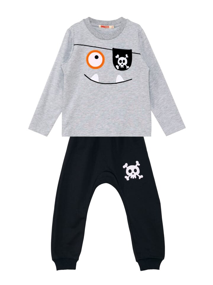 2 шт. Набор. Серая футболка из хлопкового джерси с аппликацией в виде пиратского лица. Хлопковые брюки-гарем с аппликацией в виде черепа с одной стороны. Эластичные манжеты.