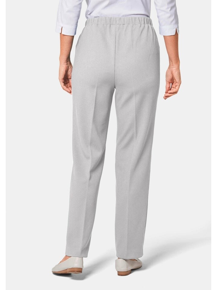 Брюки в рубчик: Балуйте себя приятным качеством каждый день. Прочный трикотаж мягкий, не мнется и держит форму. Даже если вам придется постирать брюки, они мгновенно будут готовы к использованию благодаря своим быстросохнущим свойствам. Пришитая спереди окантовка выглядит особенно удобно для фигуры. С удобным съемным поясом — просто наденьте его и наслаждайтесь максимальным комфортом при ношении. Ширина прямой штанины. Ширина низа около 42 см.