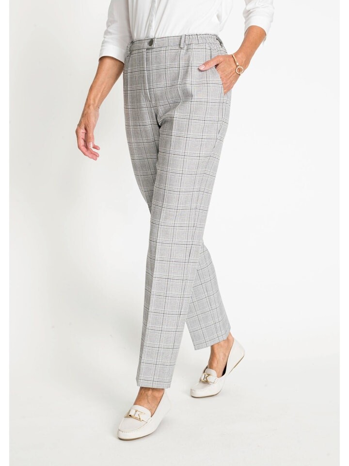 Брюки в клетку, привлекающие внимание своим привлекательным дизайном: аккуратную клетку в неподвластных времени цветах можно сочетать практически со всеми другими моделями. Изготовлен из эластичной качественной ткани с добавлением натурального хлопка и вискозы. Содержание полиэстера гарантирует, что ваши любимые брюки будут невероятно удобны в носке и за ними абсолютно легко ухаживать. Классический крой с фигурным поясом, практичными петлями для ремня и боковыми карманами. Ширина по низу CARLA ок. 38 см, ANNA ок. 42 см. Узкая ширина штанин.
