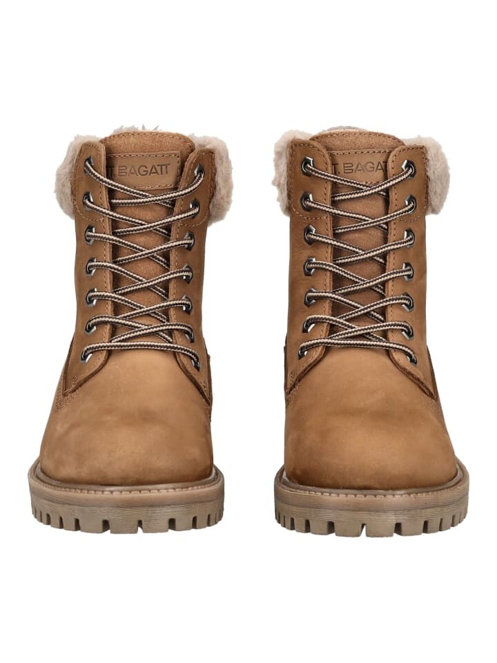 Элегантные ботильоны на шнуровке от Bagatt из тонкого нубука. Шнуровка облегчает надевание и обеспечивает оптимальный комфорт. Особое внимание привлекает меховая отделка голенища сзади, которая не только стильно выглядит, но и сохраняет ноги в тепле. В сочетании с юбкой или джинсами эти ботинки обязательно привлекут внимание осенью и зимой. Другой материал