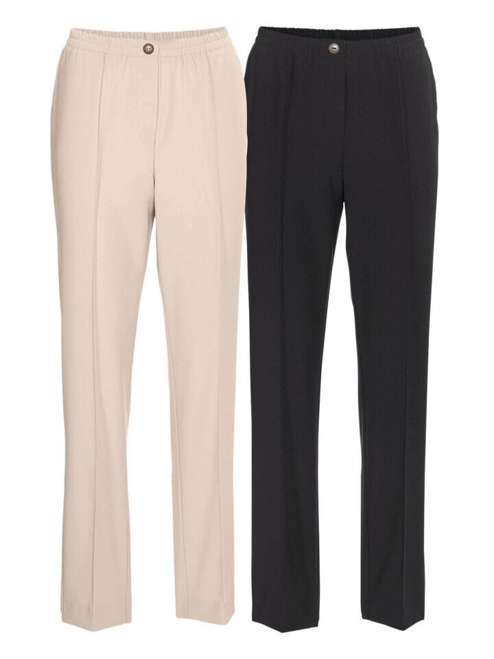 Брюки без застежек в упаковке по 2 штуки, не требующие особого ухода. Выберите свой любимый цвет и получите вторую пару брюк черного цвета. Эластичный пояс по всему периметру обеспечивает превосходный комфорт при ношении. Классическая форма с эластичной прошитой окантовкой и оптической молнией идеально дополняет безупречный общий вид двух моделей. Без карманов. Ширина прямой штанины. Ширина низа около 42 см.