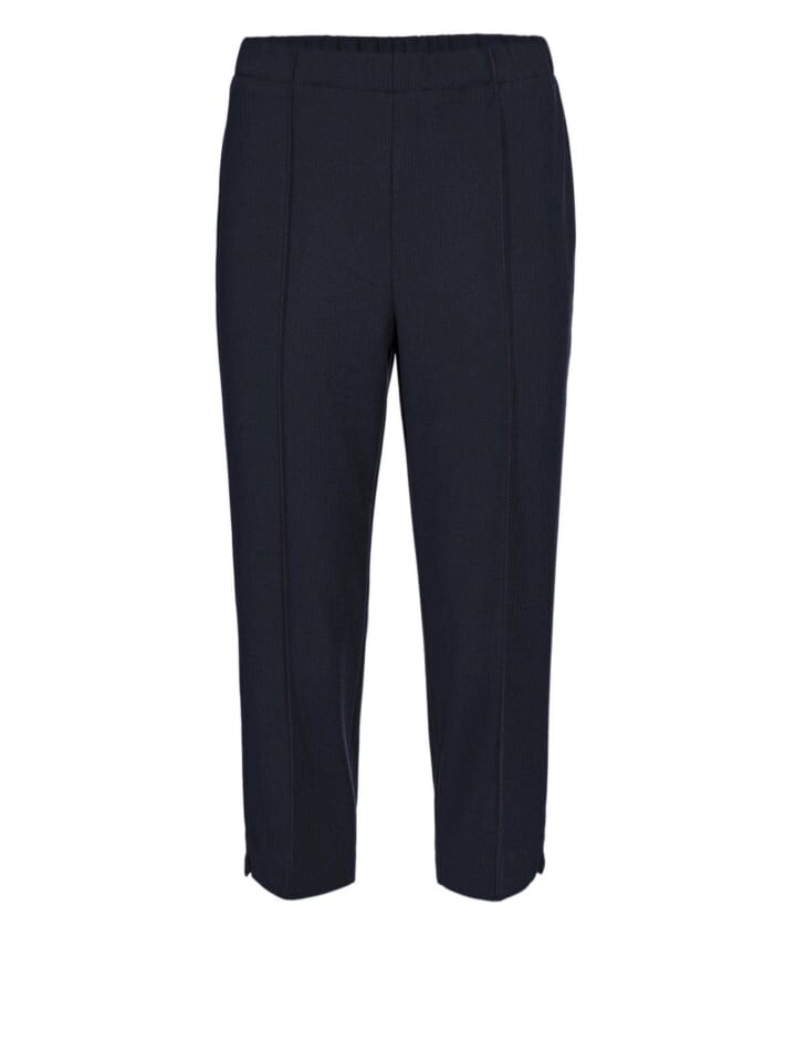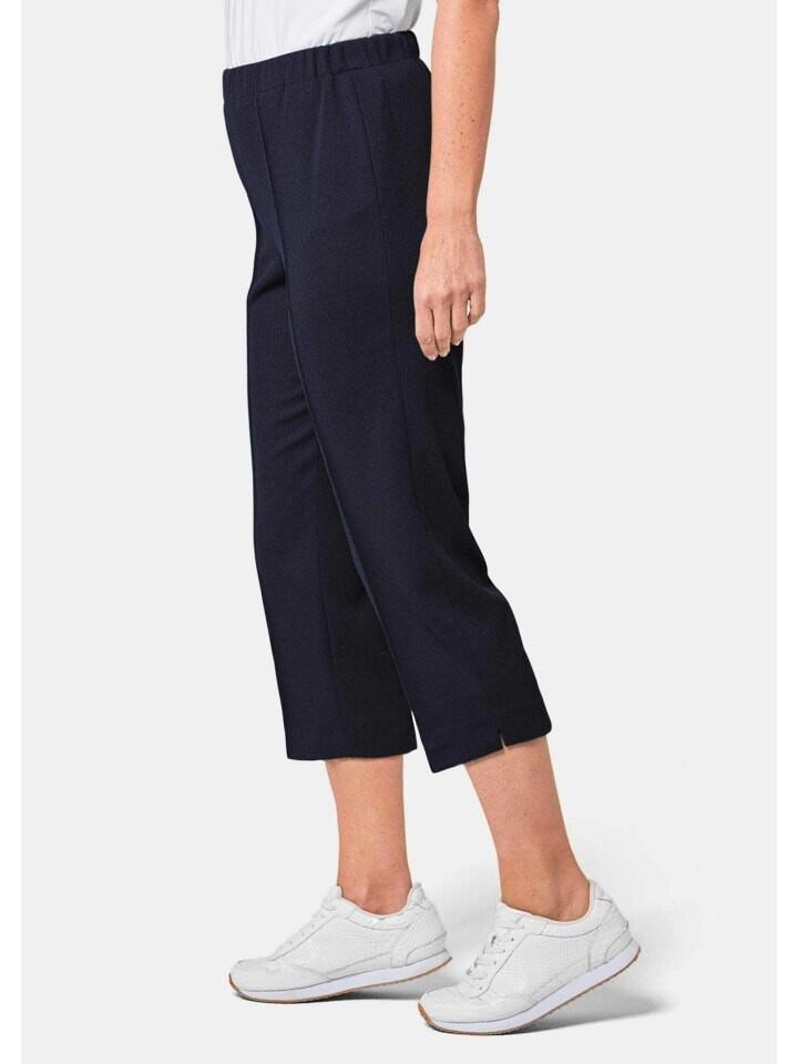 Брюки в рубчик 7/8, которые отличаются максимальным комфортом и идеально подходят для длительных поездок на автомобиле или автобусе. Прочный трикотаж приятно мягок, почти не мнется и держит форму. Благодаря несложному качеству стирки-сушки он всегда быстро готов к использованию. Оснащен удобным поясом, обеспечивающим комфорт при ношении, и стеганой окантовкой, подчеркивающей фигуру. Ширина прямой штанины. Ширина по низу около 42 см.