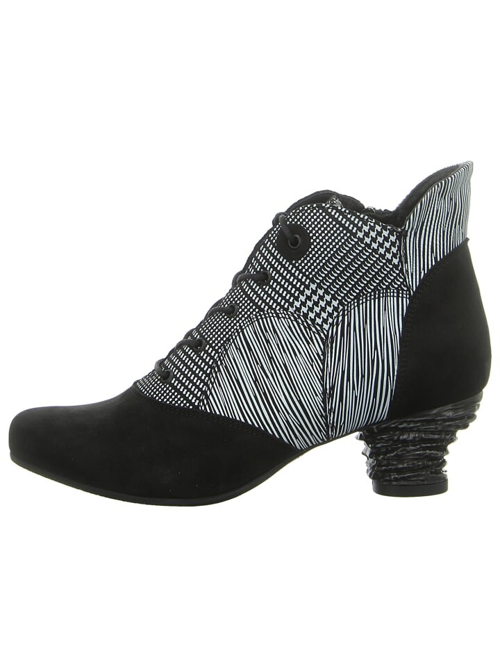 Эти необычные черные ботильоны на шнуровке от Simen, необычные, сразу порадуют вас. Ей прекрасно удается уникальное сочетание рокабилли, винтажа и ретро. Симпатичные черно-белые полосатые узоры и неотразимая форма привлекают к себе внимание. Каблук-воронка приподнимает линию ноги и придает модели сексуальный вид. Благодаря молнии и шнуркам обувь всегда идеально сидит на ноге. Не упустите это уникальное творение от Simen!