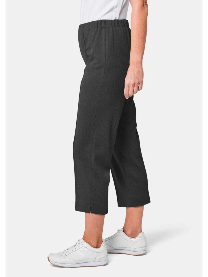 Брюки в рубчик 7/8, которые отличаются максимальным комфортом и идеально подходят для длительных поездок на автомобиле или автобусе. Прочный трикотаж приятно мягок, почти не мнется и держит форму. Благодаря несложному качеству стирки-сушки он всегда быстро готов к использованию. Оснащен удобным поясом, обеспечивающим комфорт при ношении, и стеганой окантовкой, подчеркивающей фигуру. Ширина прямой штанины. Ширина по низу около 42 см.