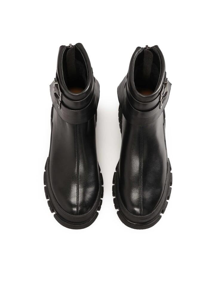 Удобные ботинки на молнии из натуральной кожи – идеальное сочетание элегантности и функциональности. Изготовленные из высококачественной натуральной кожи, они прочны и удобны в носке. Профилированная, утолщенная подошва гарантирует превосходное сцепление и амортизацию, что делает ботинки подходящими для различных поверхностей и погодных условий. Закругленные носки придают ботинкам классический шарм и обеспечивают комфорт пальцам ног. Особенностью этих ботинок является тонко сложенный голенище, украшенное ремешками с металлическими пряжками, придающими современный, слегка роковый характер.