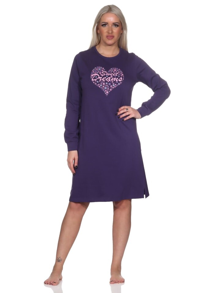 Ночная рубашка NORMANN langarm Bündchen Herz, фиолетовый