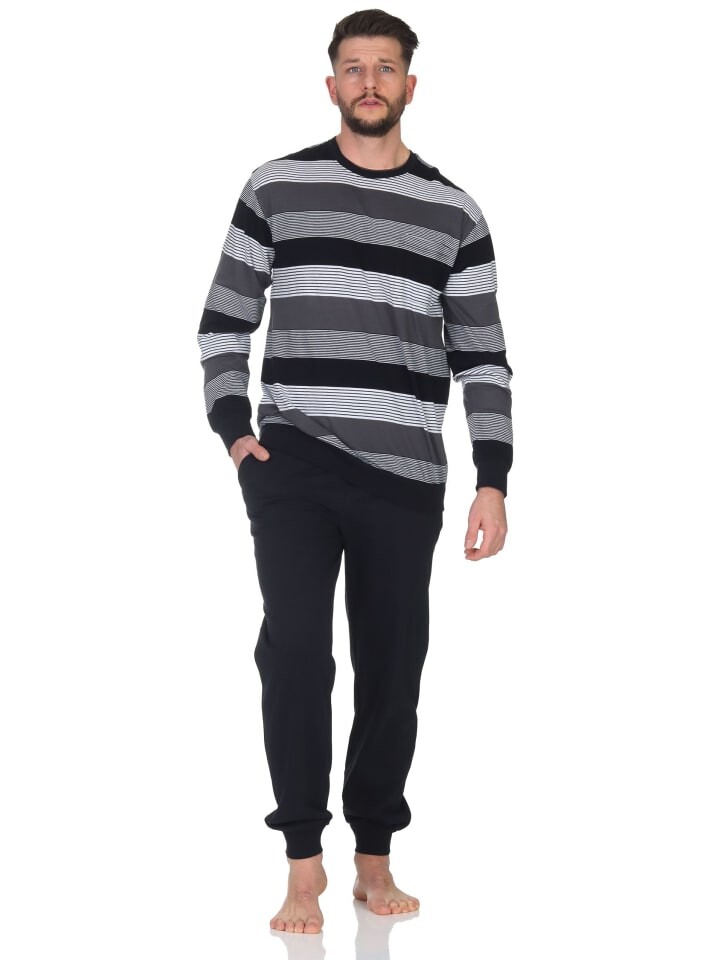 Мужская длинная пижама Normann с манжетами элегантного полосатого дизайна - также в больших размерах