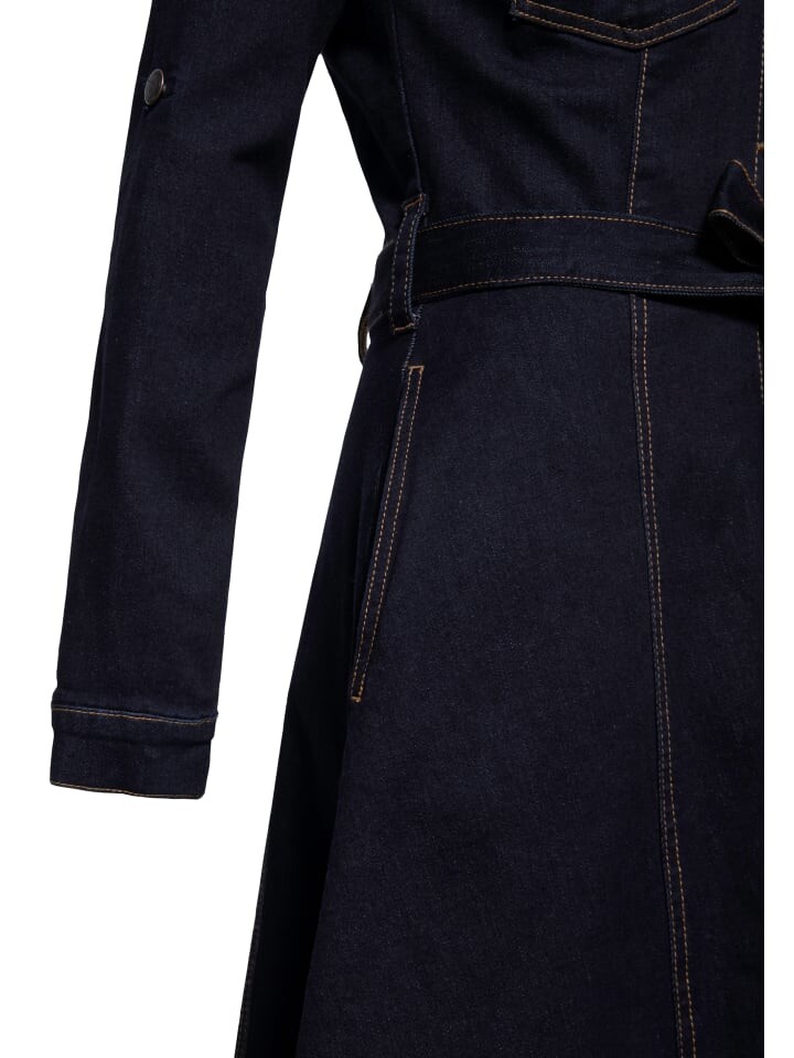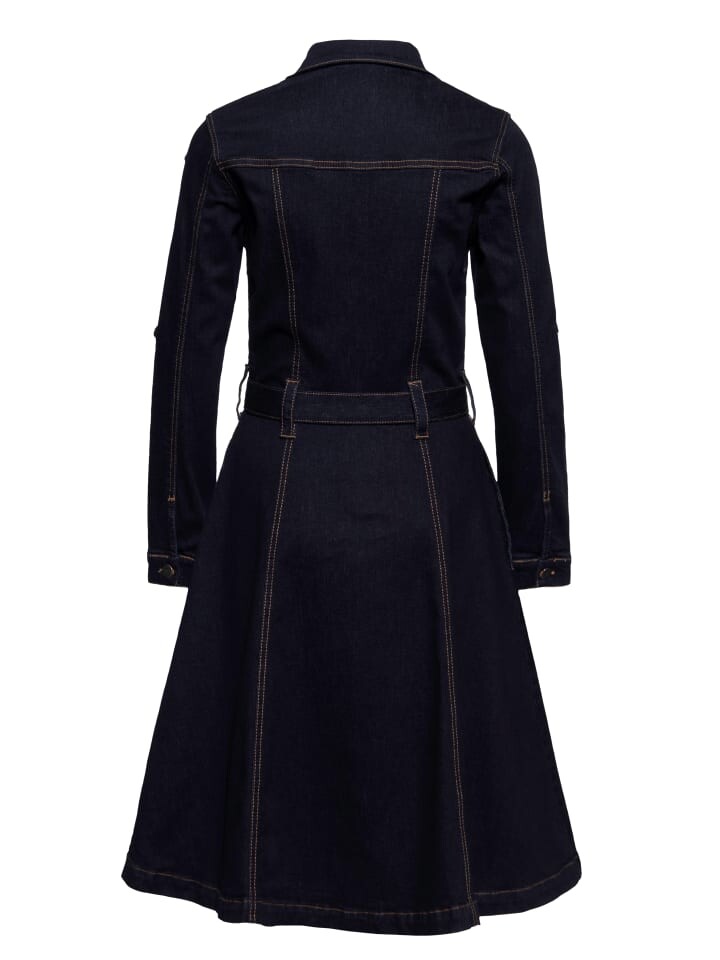 Откройте для себя свою новую любимую вещь: джинсовое свободное платье для спецодежды от Queen Kerosin. Это винтажное платье классического темно-синего цвета представляет собой идеальное сочетание вневременного стиля и современного комфорта. Джинсовая ткань подчеркнет ваш стиль. Платье в рабочей одежде имеет расклешенную юбку, которая выгодно подчеркивает талию и поддерживается съемным завязывающимся ремешком. Содержание эластана обеспечивает комфортную свободу движений, идеально подходящее для активной повседневной жизни или танцпола. Это платье с классическим воротником, практичными боковыми карманами и эстетичными манжетами на пуговицах неповторимо сочетает в себе стиль и функциональность. Два накладных нагрудных кармана с клапаном и пуговицей, украшенные металлической декоративной аппликацией «QK» на левом кармане, добавляют практичности. Вы можете легко закатать длинные рукава и закрепить их стильной застежкой и пуговицей, которая идеально подходит для любого сезона.