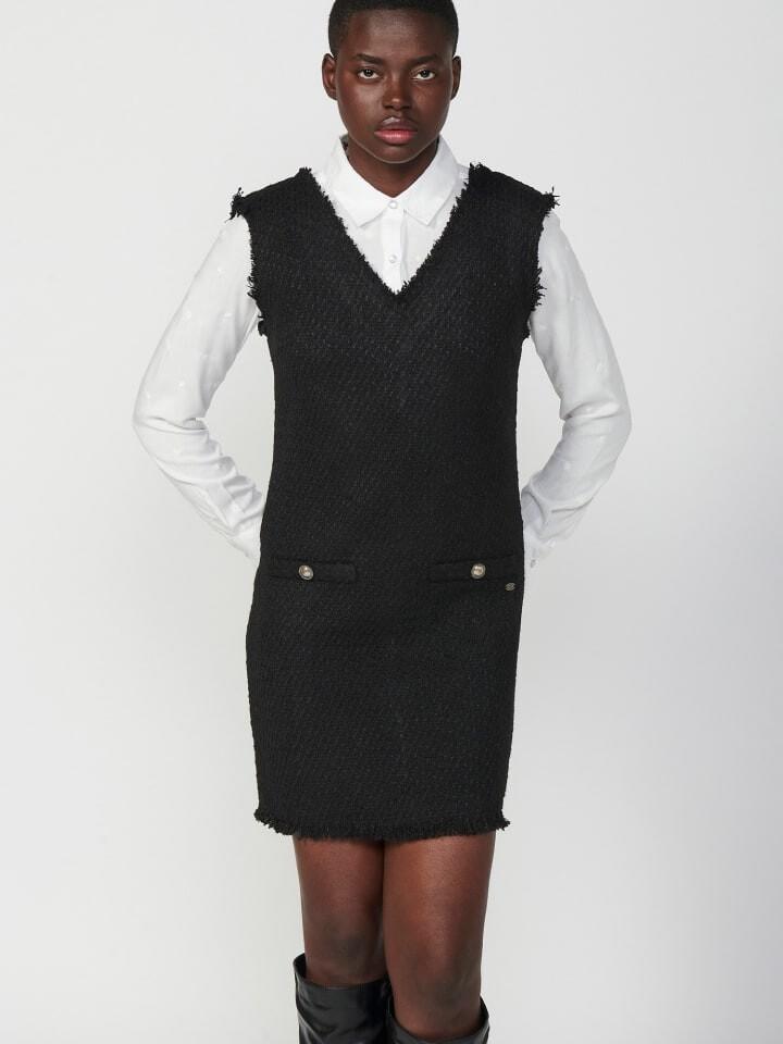 Платье-майка на широких бретелях. Ткань твид. Состав 100%Полиэстер.