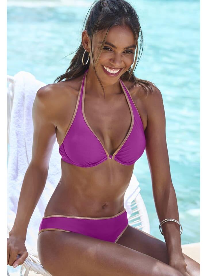 Лиф бикини на косточках от Bruno Banani со съемными чашками. Блестящая окантовка, завязка на шее и застежка сзади. Эластичное и удобное качество из переработанного полиамида.
