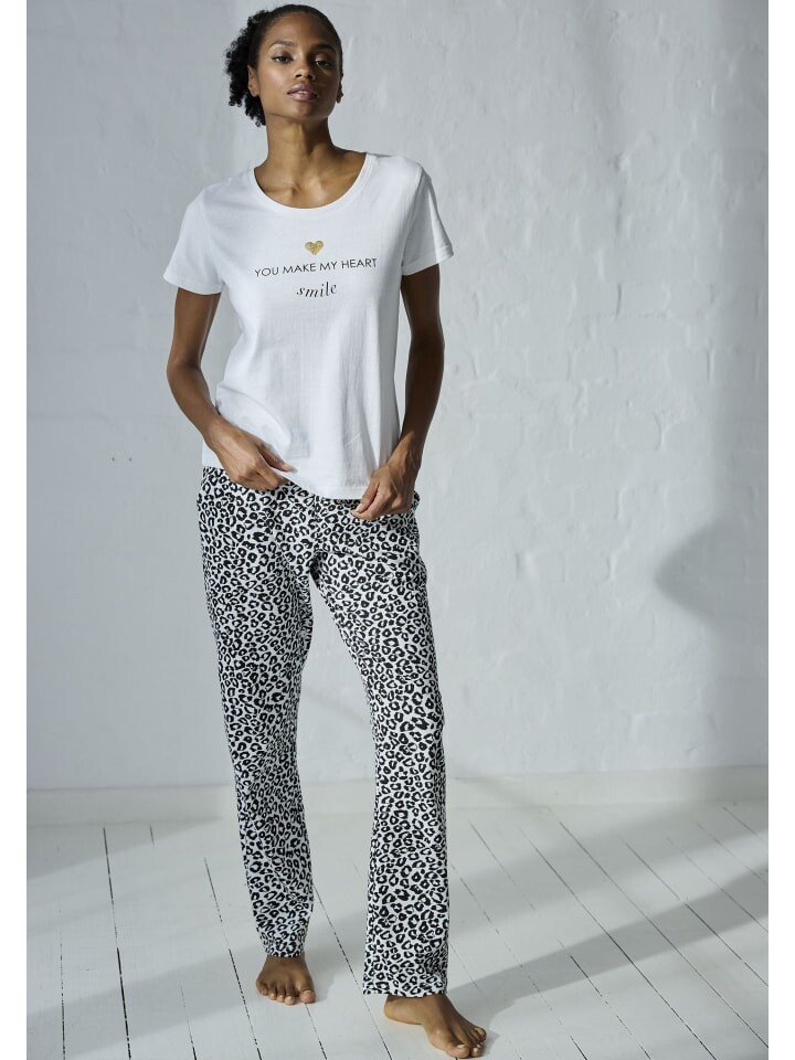 Пижамные брюки с принтом по всей поверхности, боковыми карманами и поясом на кулиске приятного качества из 100% хлопка.