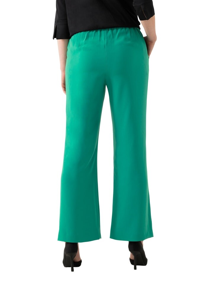 Костюмные брюки из высококачественного, плавно ниспадающего ацетата, с широкими прямыми брючинами. Эластичный пояс, боковые карманы.