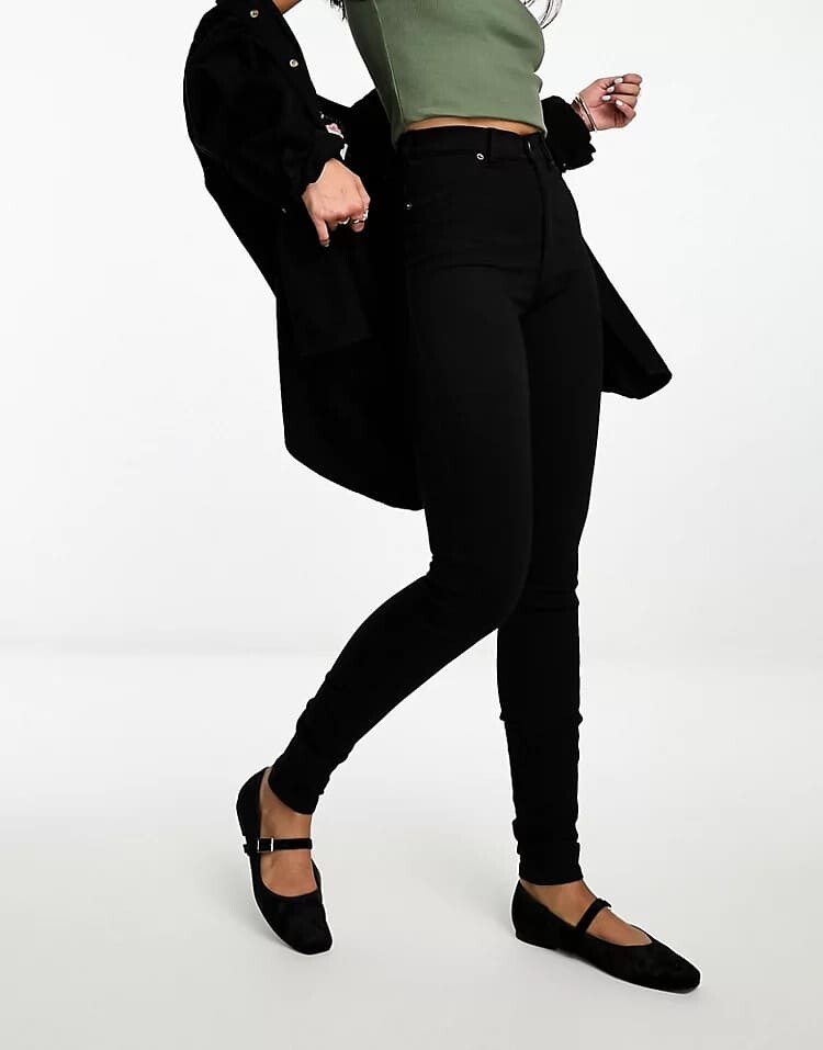 Это женские супер-облегающие джинсы с высокой посадкой. Изготовлены из качественного черного денима, они идеально подчеркнут вашу фигуру. Эти джинсы прекрасно сидят на талии и обеспечивают комфортную посадку.