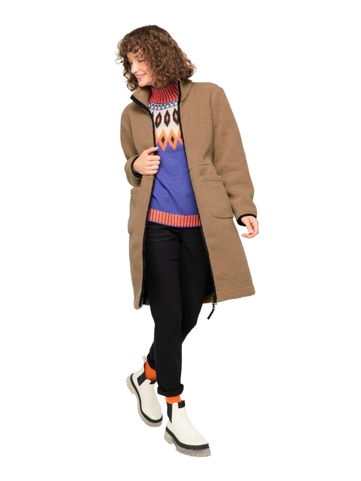 Пальто Тедди, приятное, мягкое и очень модное. Удобная посадка, воротник-стойка, двусторонняя молния и 2 накладных кармана. Длинные рукава, эластичные манжеты. Боковые разрезы на длинной молнии. Внешний материал: 100% полиэстер.