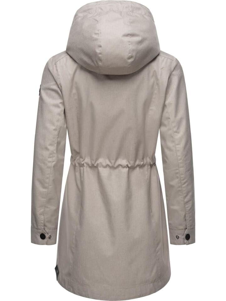 ВИД: Стильное женское полупальто на толстых шнурах-кулисках от модного лейбла уличной одежды Ragwear – идеально для переменчивого переходного периода. МАТЕРИАЛ: Легкое полупальто из ветронепроницаемого, водонепроницаемого и дышащего внешнего материала (водяной столб 11 000 мм), гладкого и шелковистого. внутренняя подкладка делает куртку очень удобной в ношении