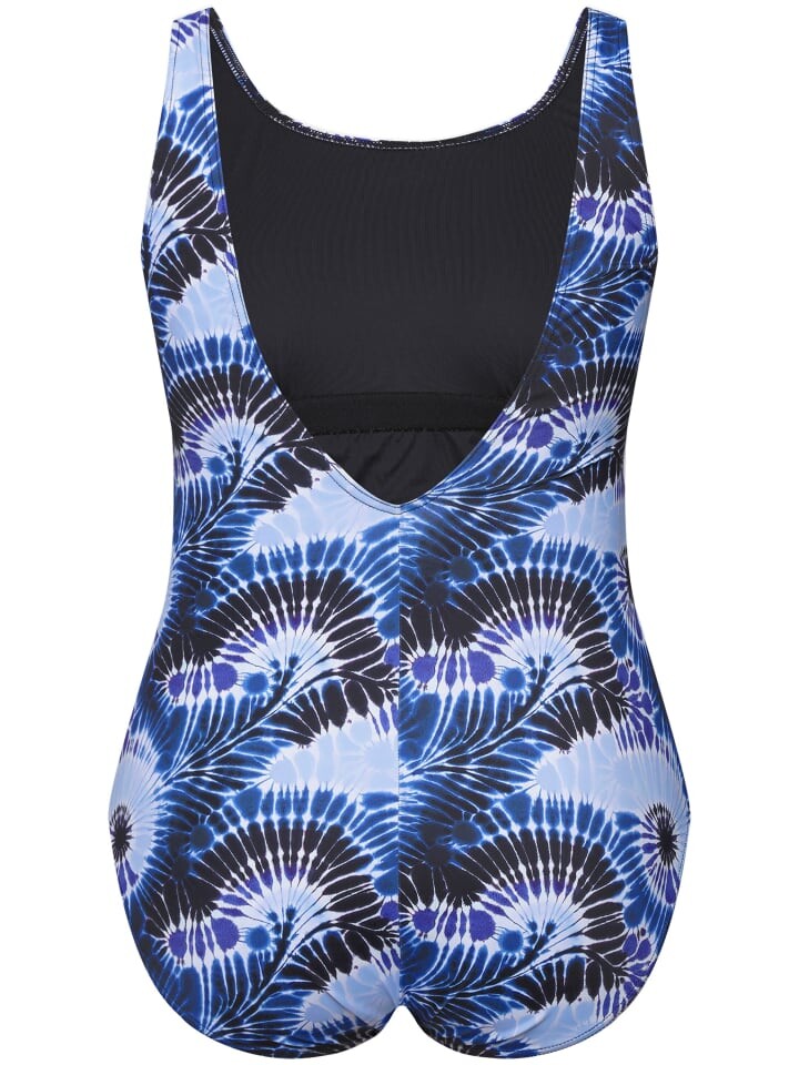 Купальник без мягких чашек. Форма купальника с узором тай-дай, резинка под грудью, подкладка спереди. OEKO-TEX.