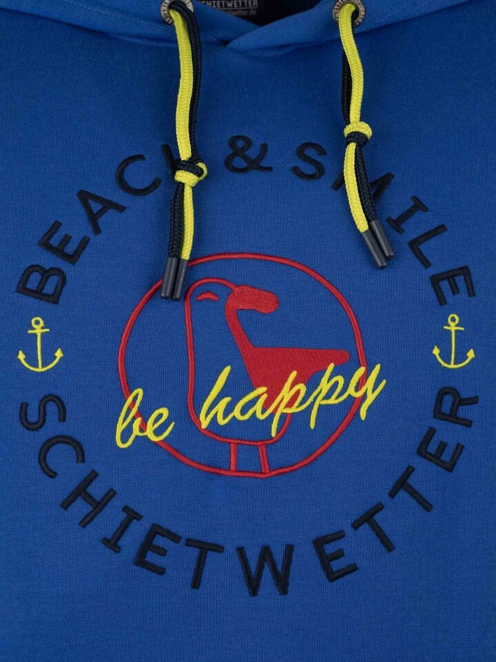 Эй, вы, сухопутные жители! Неважно, в открытом море или на суше – толстовка «Акула Клаус» – идеальная толстовка для всех морских волков, которые хотят совместить морской стиль с высоким уровнем комфорта. Мужская толстовка с капюшоном "Haifisch Klaus" - стильный и удобный спутник на любой случай. Эта красочная толстовка с эффектной вышивкой "Beach & Smile", вышивкой "Schietwetter-Seagull" и позитивной надписью "be Happy" привлекает внимание. само внимание каждого. Яркие цвета придают ему уникальный вид, выделяющий его из толпы. Включите телескоп — такого крутого свитера вы вряд ли где-нибудь еще увидите! Толстовка «Акула Клаус» изготовлена из высококачественного материала, на 60% состоящего из хлопка. При весе 320 г он теплый и уютный. Широкие эластичные манжеты с надписью Schietwetter обеспечивают удобную посадку. Свитер имеет большой карман-кенгуру, который идеально подходит для согрева рук или хранения мелких вещей. Два тонких шнура разного цвета на капюшоне и дополнительная вышивка на капюшоне стильно завершают морской дизайн.