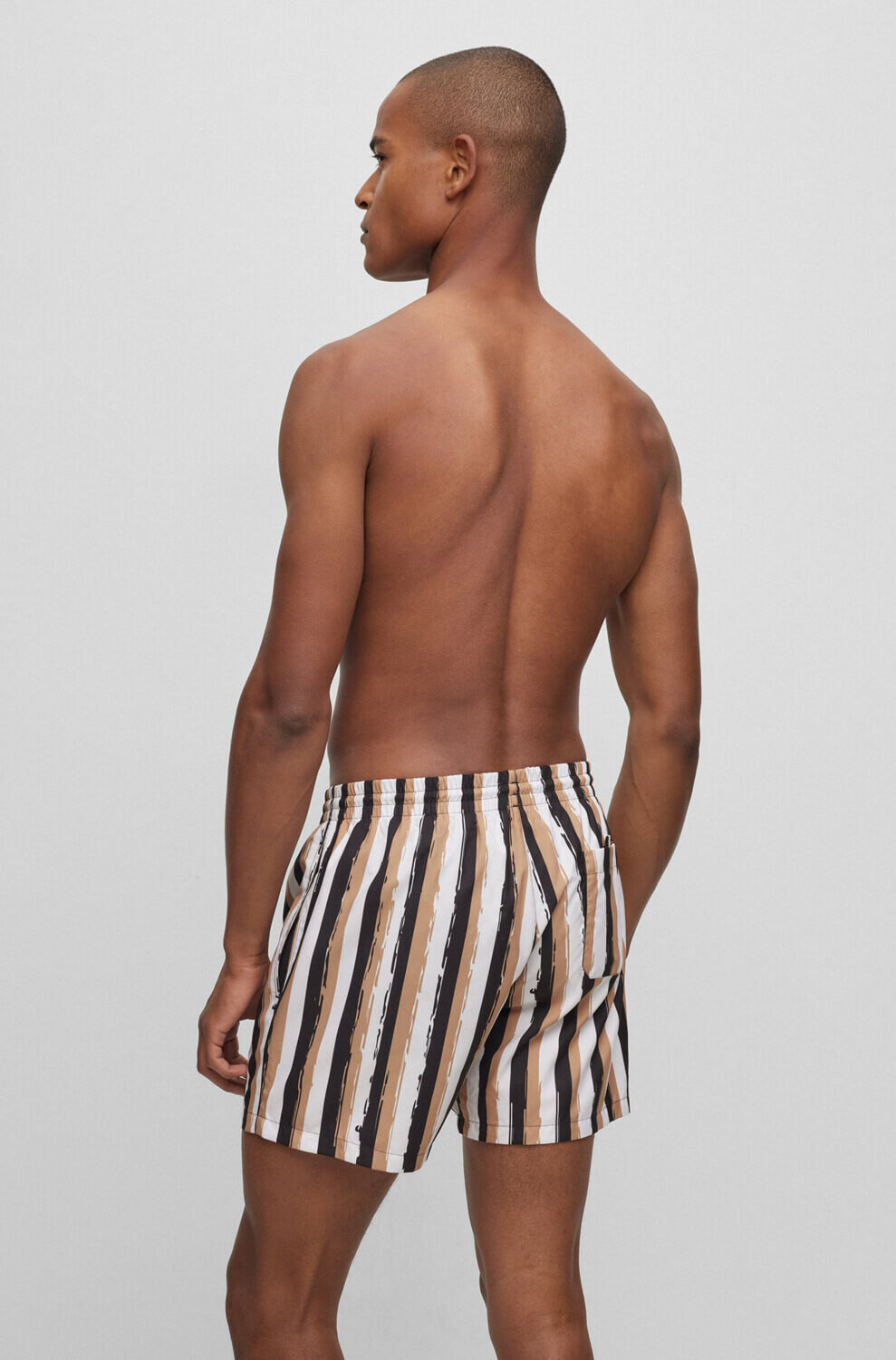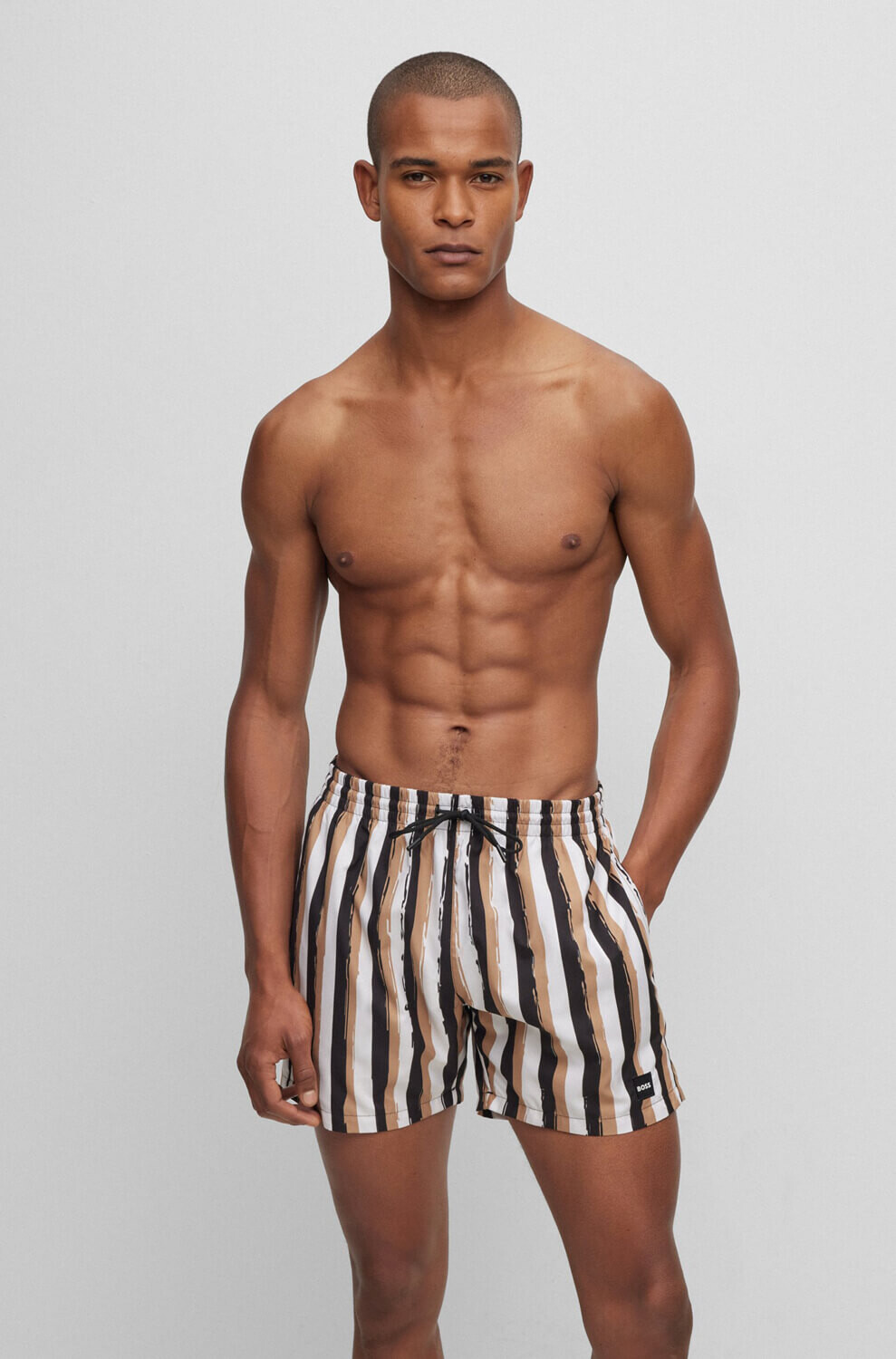 Купальные шорты от BOSS на полной подкладке, из быстросохнущей ткани с вертикальными полосками, с нашивкой с логотипом.