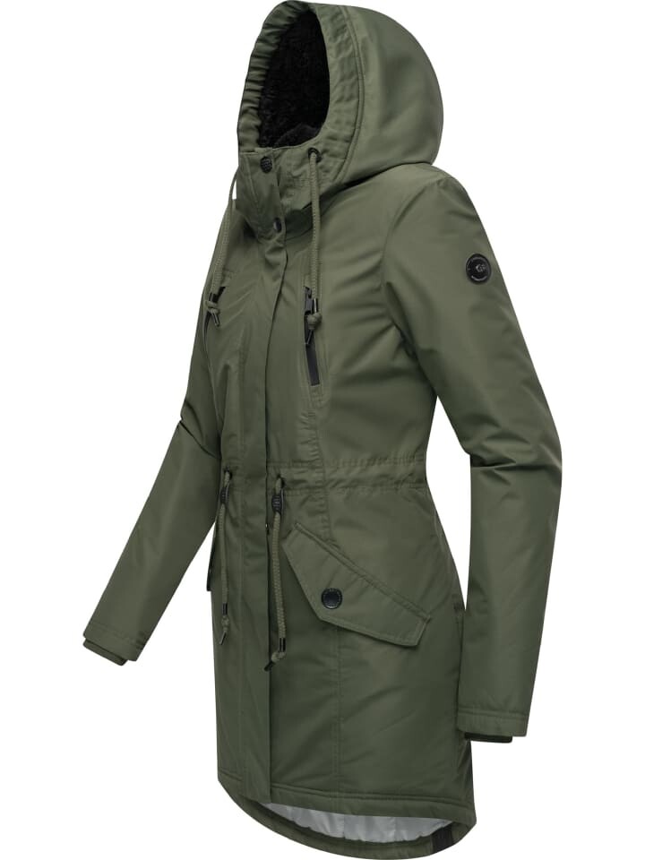 ВИД: Это стильное зимнее полупальто придаст любому наряду современный, функциональный вид и женственный силуэт. Идеально сочетается с джинсами и ботинками для повседневного зимнего образа. МАТЕРИАЛ: Пальто выполнено из высококачественного водонепроницаемого материала, выдерживающего толщину воды 8000 мм. Дышащая функция (5000 г/м²/24 часа) обеспечивает приятный комфорт при ношении, а внутренняя подкладка, частично выполненная из мягкого искусственного меха, обеспечивает дополнительный комфорт. середина бедер. Регулируемая талия с завязками обеспечивает оптимальную посадку, облегает тело и в то же время защищает от ветра и непогоды.