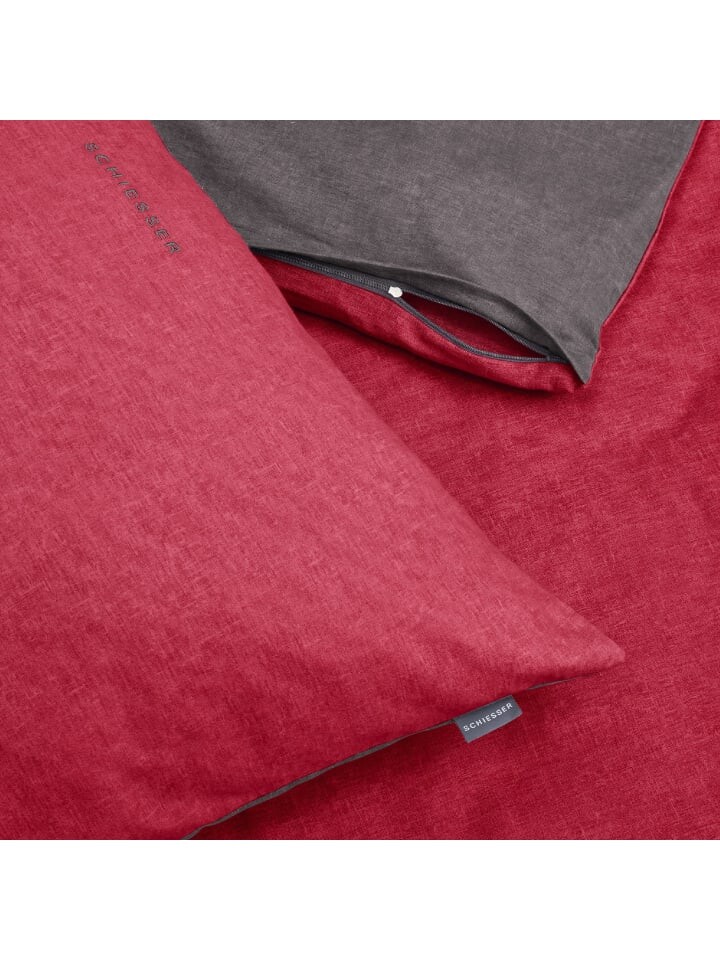 Постельное белье Schiesser set Doubleface Feinbiber 2 tlg, цвет rot-dunkelgrau