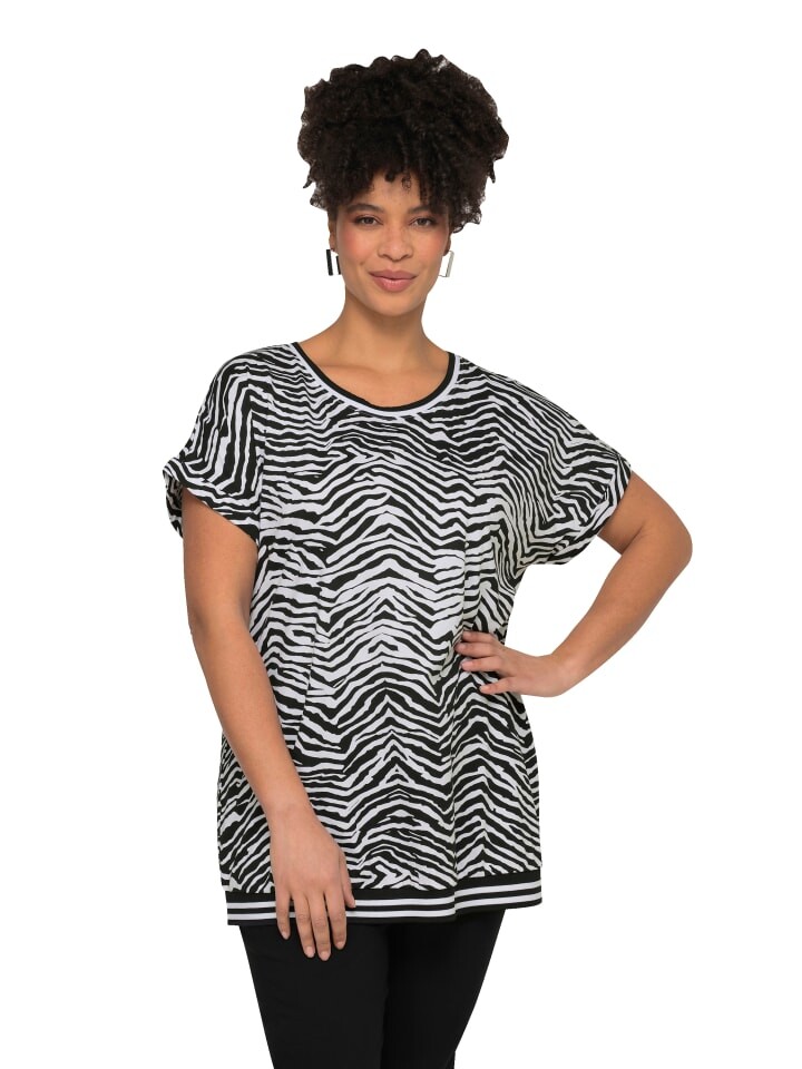 Футболка оверсайз с зебровым принтом. Круглый вырез, заниженная линия плеча, полурукава.