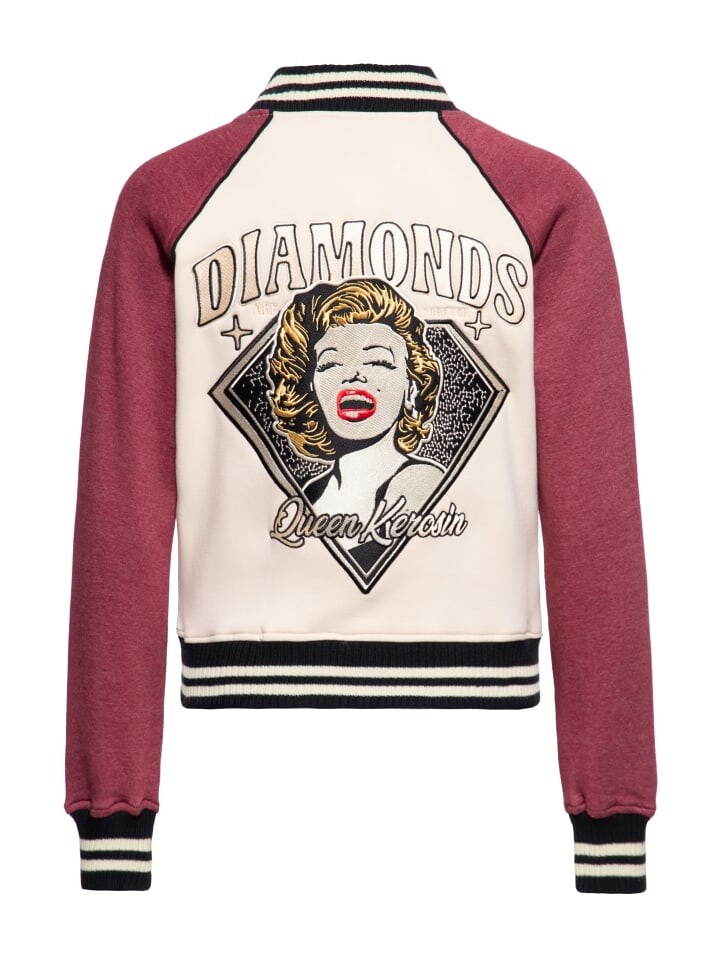 Ощутите великолепие ушедших времен с новой студенческой курткой Queen Kerosin «Бриллианты навсегда». Эта куртка — больше, чем просто предмет одежды — это выражение вневременного стиля, индивидуальности и очарования 50-х годов. Сердцем этой впечатляющей куртки является художественная вышивка на спине. Культовая улыбающаяся девушка в стиле пин-ап на ромбовидном фоне пробуждает тоску по гламурной эпохе и вечному очарованию. Куртка сочетает в себе ностальгию с современным стилем и позволяет погрузиться в великолепие прошлого. Помимо привлекательного внешнего вида, куртка также предлагает практичные детали: рукава контрастного цвета и эластичные ребристые манжеты обеспечивают идеальную посадку и спортивный вид. комфорт. Прочные кнопки и практичные карманы делают его идеальным спутником как в повседневной жизни, так и в особых случаях. Вышивка на груди «Бриллианты навсегда» гармонично завершает дизайн и придает куртке дополнительную изысканность. Будьте готовы носить вневременное великолепие пятидесятых в своей повседневной жизни и станьте сияющей иконой с этой студенческой курткой от Queen Kerosin!