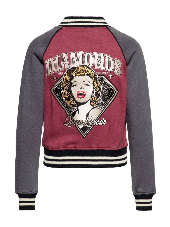 Ощутите великолепие ушедших времен с новой студенческой курткой Queen Kerosin «Бриллианты навсегда». Эта куртка — больше, чем просто предмет одежды — это выражение вневременного стиля, индивидуальности и очарования 50-х годов. Сердцем этой впечатляющей куртки является художественная вышивка на спине. Культовая улыбающаяся девушка в стиле пин-ап на ромбовидном фоне пробуждает тоску по гламурной эпохе и вечному очарованию. Куртка сочетает в себе ностальгию с современным стилем и позволяет погрузиться в великолепие прошлого. Помимо привлекательного внешнего вида, куртка также предлагает практичные детали: рукава контрастного цвета и эластичные ребристые манжеты обеспечивают идеальную посадку и спортивный вид. комфорт. Прочные кнопки и практичные карманы делают его идеальным спутником как в повседневной жизни, так и в особых случаях. Вышивка на груди «Бриллианты навсегда» гармонично завершает дизайн и придает куртке дополнительную изысканность. Будьте готовы носить вневременное великолепие пятидесятых в своей повседневной жизни и станьте сияющей иконой с этой студенческой курткой от Queen Kerosin!