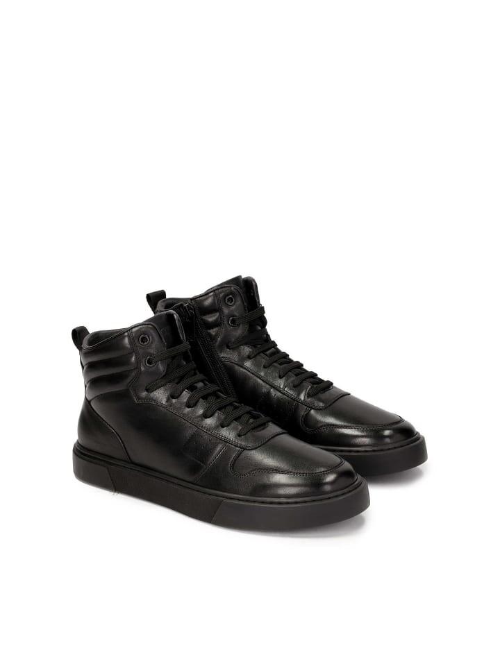 Черные кроссовки на высоком голенище из натуральной кожи – стильная и удобная обувь, идеальная для различных случаев. Их современный дизайн сочетает в себе элегантность и повседневный характер, что делает их универсальными и легко сочетаемыми с разными стилями. Высокий голенище обеспечивает дополнительную поддержку и защиту лодыжки, что особенно полезно во время физических нагрузок или длительного ношения. Голенище украшено стежкой вокруг щиколотки, что придает туфлям характер и подчеркивает их современный вид. Стежка не только выполняет эстетическую функцию, но и повышает комфорт пользователя, поскольку обеспечивает дополнительную мягкость и поддержку вокруг лодыжки. Натуральная кожа, использованная для изготовления этих кроссовок, имеет высочайшее качество, что обеспечивает долговечность и элегантный вид.