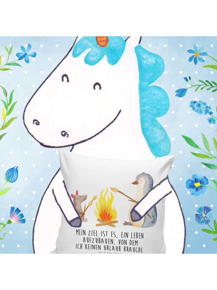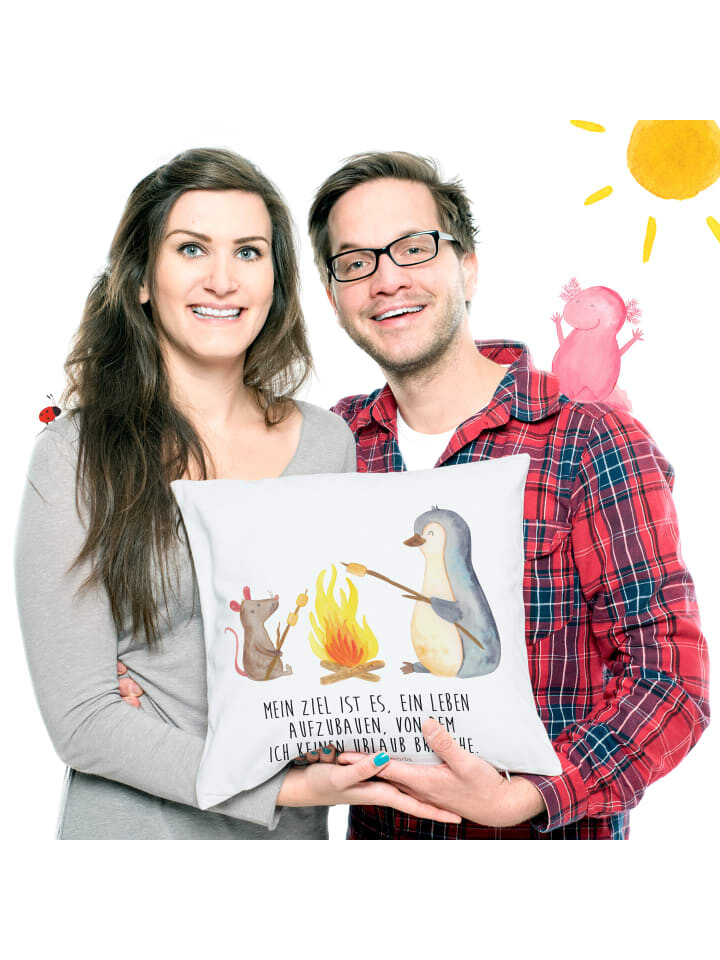 Подушка Mr & Mrs Panda 40x40 Pinguin Lagerfeuer, белый