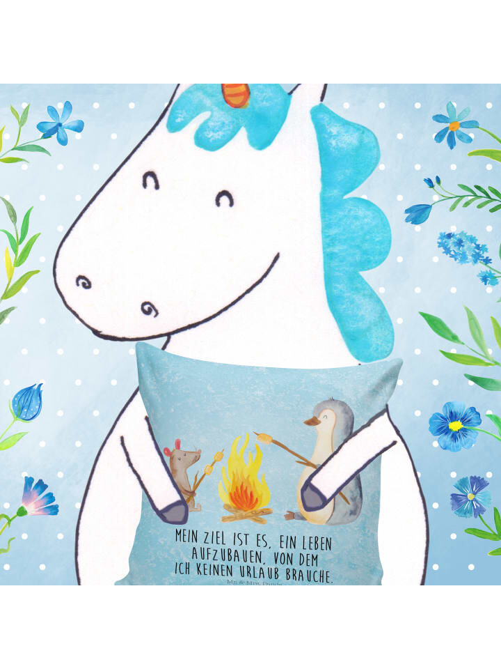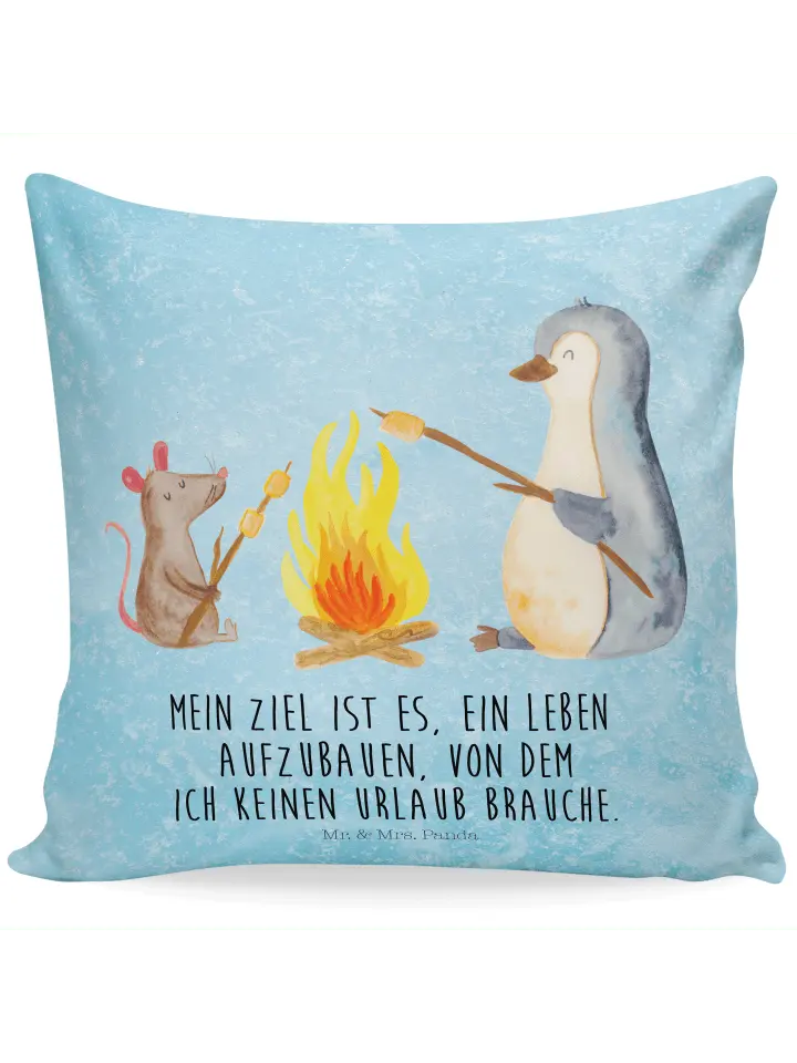 Подушка Mr & Mrs Panda 40x40 Pinguin Lagerfeuer, цвет eisblau